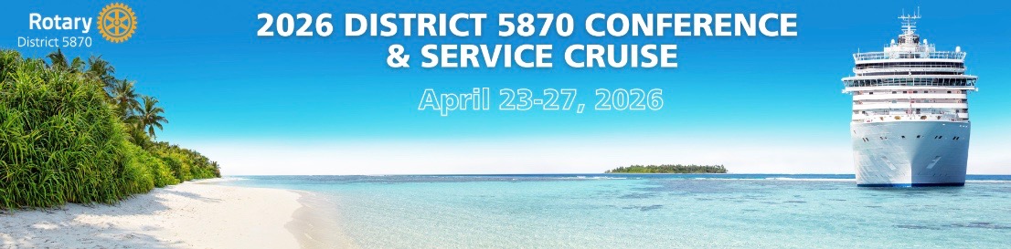 Join your fellow Rotarians for an unforgettable blend of service, celebration, and sunshine aboard the 2026 District Conference and Service Cruise!